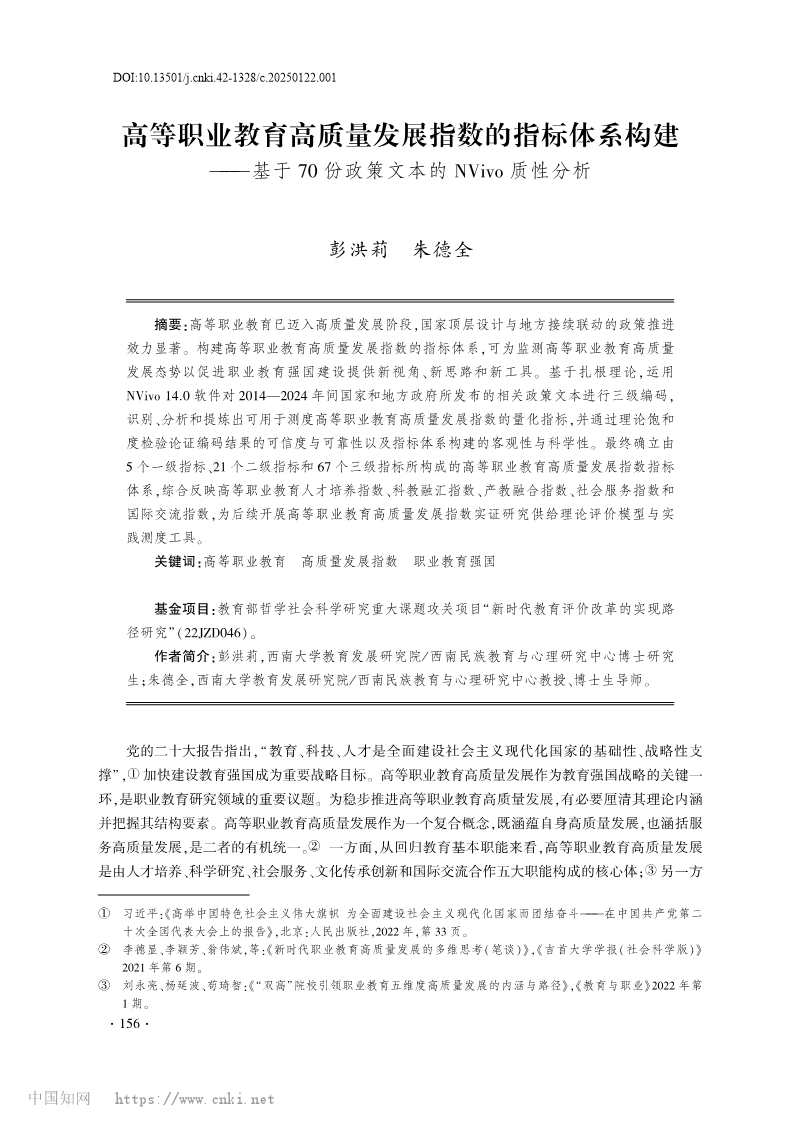 彭洪莉、朱德全:高等职业教育高质量发展指数的指标体系构建
