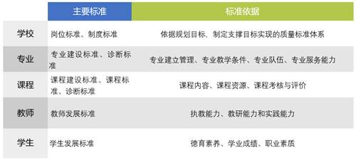 标准制定要体现多元质量观,采用刚性与柔性相结合的办法,解决特色发展与创新发展的问题,坚持“目标导向与问题导向”的统一。从实际出发,查找问题、研究问题、解决问题,重点解决学校内部治理中存在的“透明管理”等突出问题;从专业建立管理、专业教学条件、专业队伍、专业服务能力等维度制定专业建设标准和诊断标准;从课程内容、课程资源、课程考核与评价等维度制定课程建设标准、课程标准和课程诊断标准;教师发展标准要以提升教师的执教能力、教研能力和实践能力为要素;学生发展标准要重点考虑学生的德育素养、学业成绩、职业素质。通过标准体系的打造,形成学校内部质量保证体系的标准链。