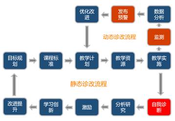 针对课前、课中、课后三个环节,设置课程诊断要素,引入课堂教学平台,实时采集学生出勤、课堂互动、随堂测验、作业完成、学习效果等数据并进行分析,发现问题及时预警,不断优化和完善教学实施过程,提高课堂教学质量和教学效果。