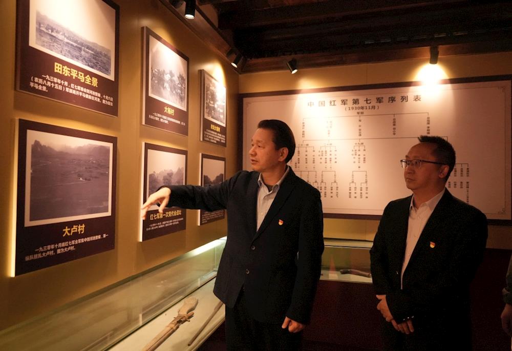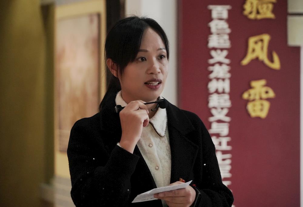 接着,大家来到红七红八军河池整编阅兵纪念馆,韦元秀书记介绍纪念馆情况,王昊玮老师带领大家参观纪念馆并在“广安昌盐店”这个位置,分享“200 斤盐背后的真情故事”,黄颖老师带领大家重温入党誓词,声声誓言在空气中回荡,彰显着党员们不忘初心、牢记使命的坚定信念。