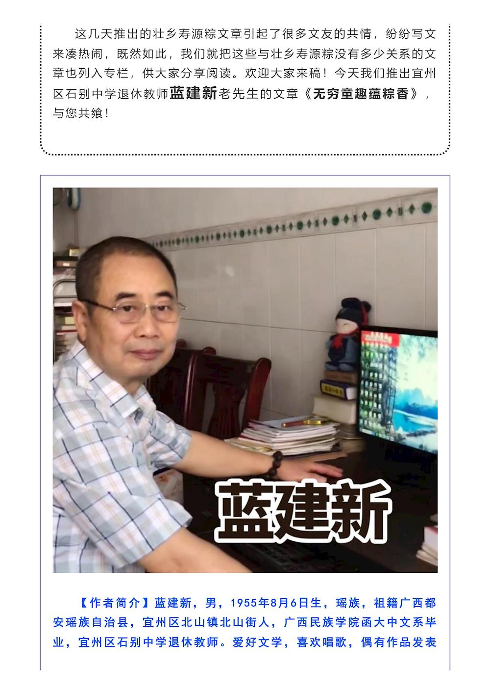 [老鸟传媒·壮乡寿源粽专栏]宜州退休教师蓝建新:无限童趣蕴粽香 来源:老鸟传媒 发布时间:2022-08-10 11:30:01 浏览次数: 次 【字体:小 大】 终审:gxxdxcb004 【打印正文】 相关信息