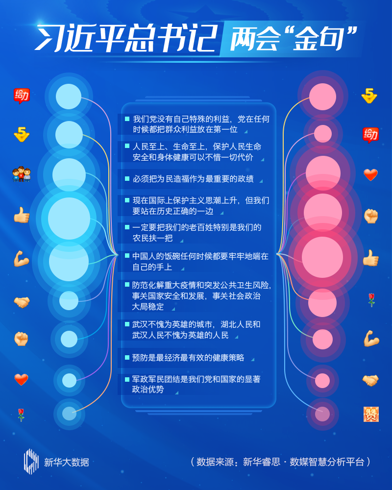 总书记饱含深情的话语一经发出,立刻通过网络传导触及每一个网民的情感神经,引发大量情感共鸣。两会期间,新华睿思持续追踪相关数据,并对网民的情绪变化和留言进行集纳分析。